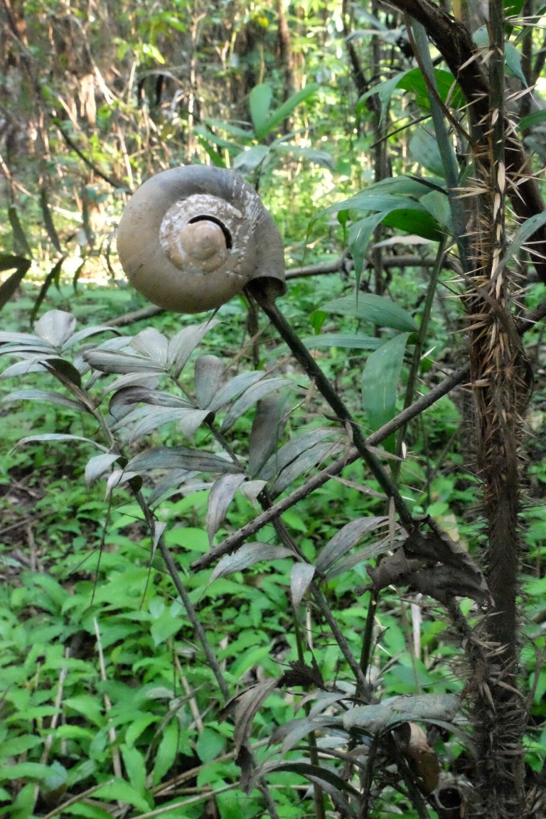 In the jungle we can see massive shells. Didn`t see the snails in there alive though, but just the shells. Here is someone had put on a tree branch.