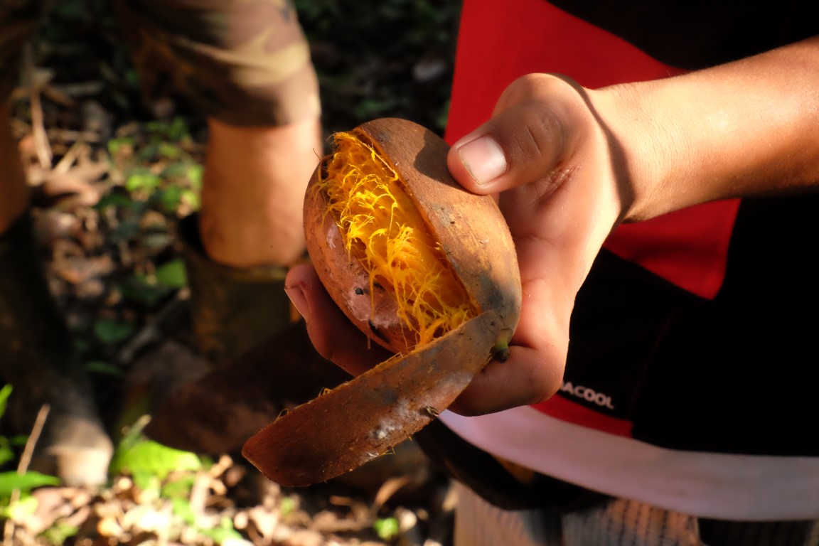 I remember we asked a bit about these giant leaves and when Yair touched them randomly, some very small bats were sleeping under them and flew away in a matter of seconds. It was nice to see that! I remember asking him which insect was eating the leaves, if it was ants or others, and him replying that the holes were made by the rain and wind in the jungle when the rain and wind were strong. Not sure if I believe that, but ok then.