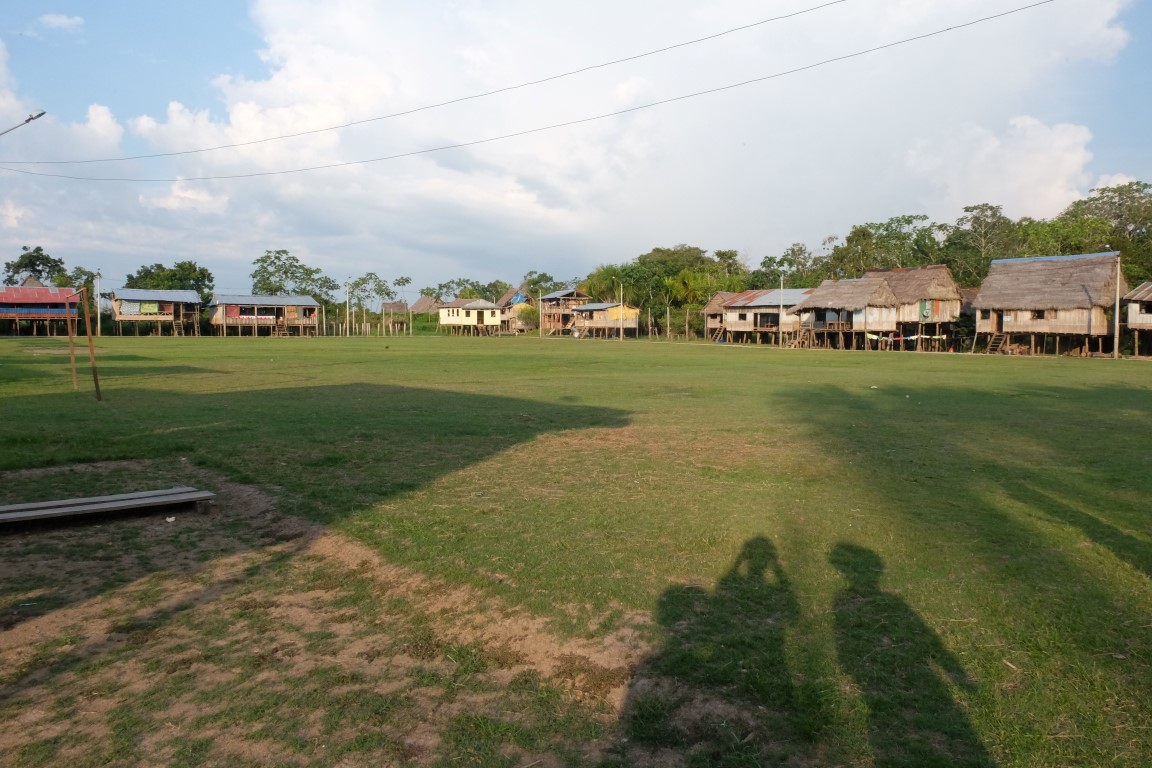 Entering the village of Liberta. I like how the canoes are placed below each house.