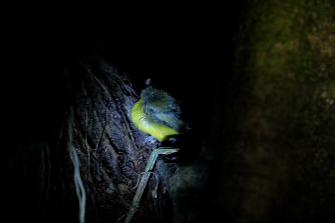 After that we saw this bird sleeping. And not much else, other tarantulas, a cricket sleeping, even a centipede. Walking through the jungle at night, itself, is a fantastic experience though. You walk with the torches and you hear the jungle sounds, the crickets, the frogs, the monkeys, some birds, it is just such a beautiful atmosphere, I really like that. And compared to the daytime, it is also less humid! Still a bit, but less.