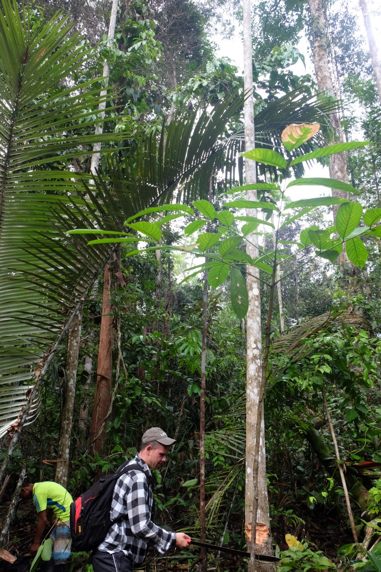 At some point in our walk, Franck suggested we chop a palm tree to eat its heart. He asked Nick if he wanted to chop it with the machete, and then Nick started.