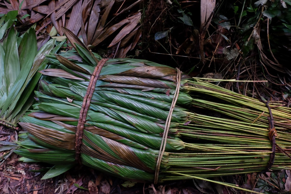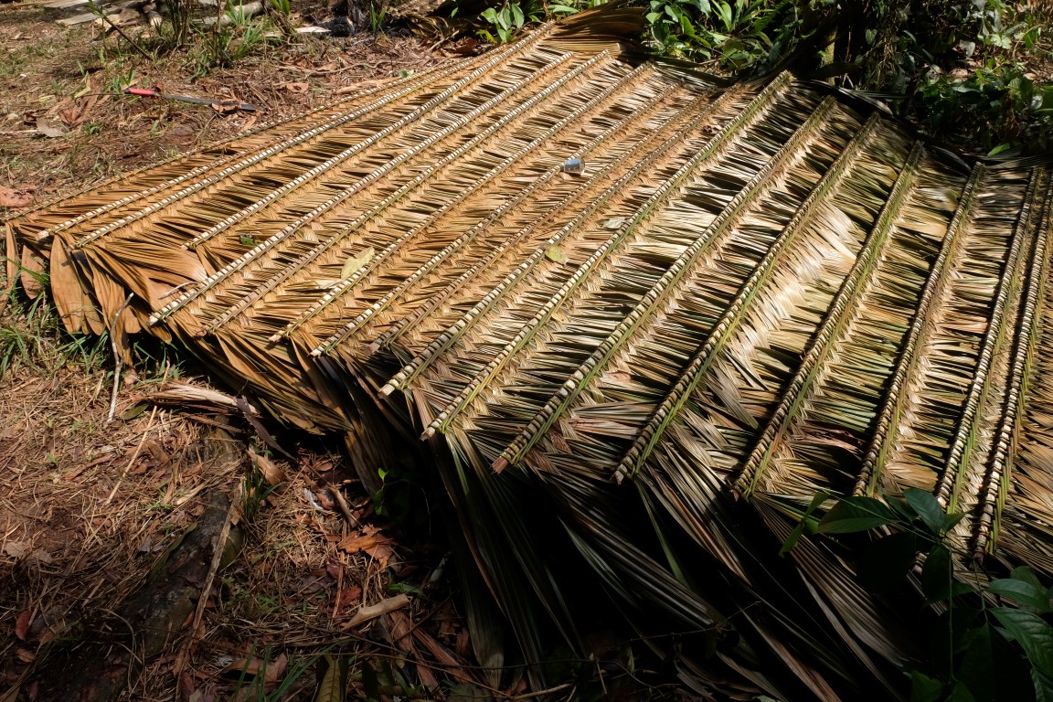 Here were the leaves they had collected in the forest and put together, ready to be used to create that roof branch.