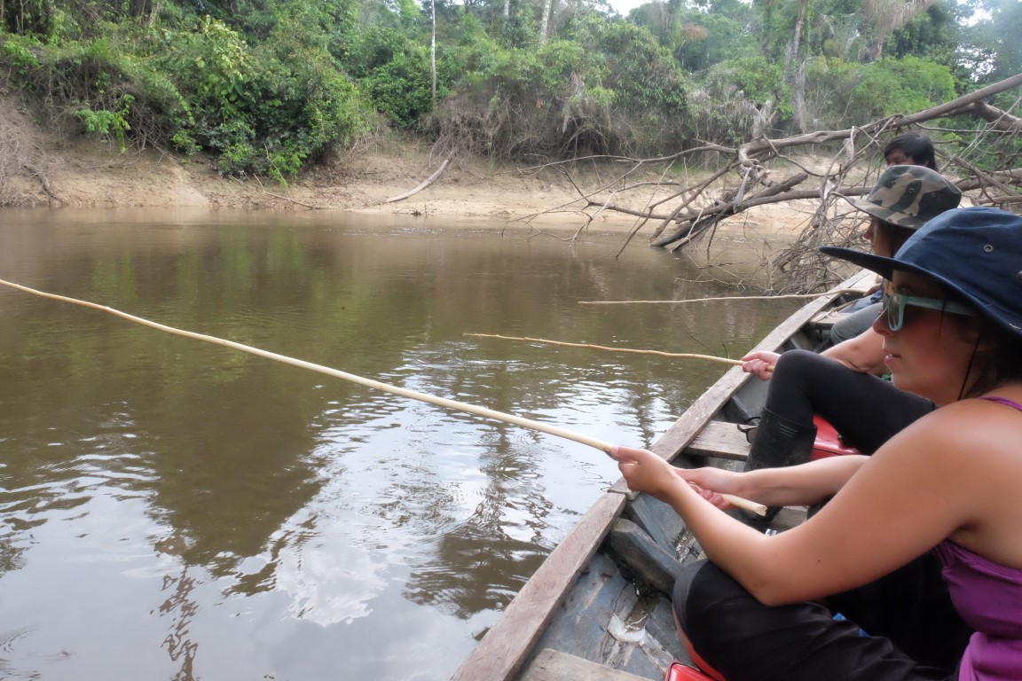 Some went for a swim, with Jana and Stefan we just sat there cooling / drying down. While they went for a swim, Franck, Yair, Beto and Fernand made fishing rods. Around noon, we went fishing. We better catch something otherwise there would be no lunch today! 🙂 We split in two boats. Jana, Stefan, Miriam and Nick went with Franck and Beto and Katie, Rachel and me went with Yair and Fernand.
