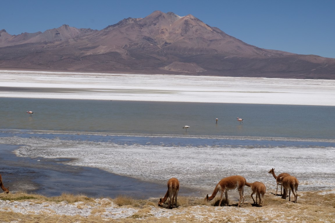 We got closer to the Salar de Surire. We could see flamingos and vicunas.