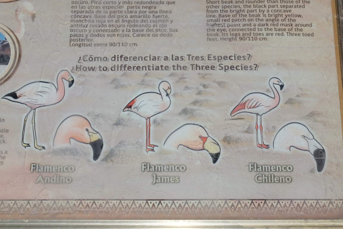 There are three type of flamingos which can be observed. Not always easy to identify which one is what when looking at them from far though!