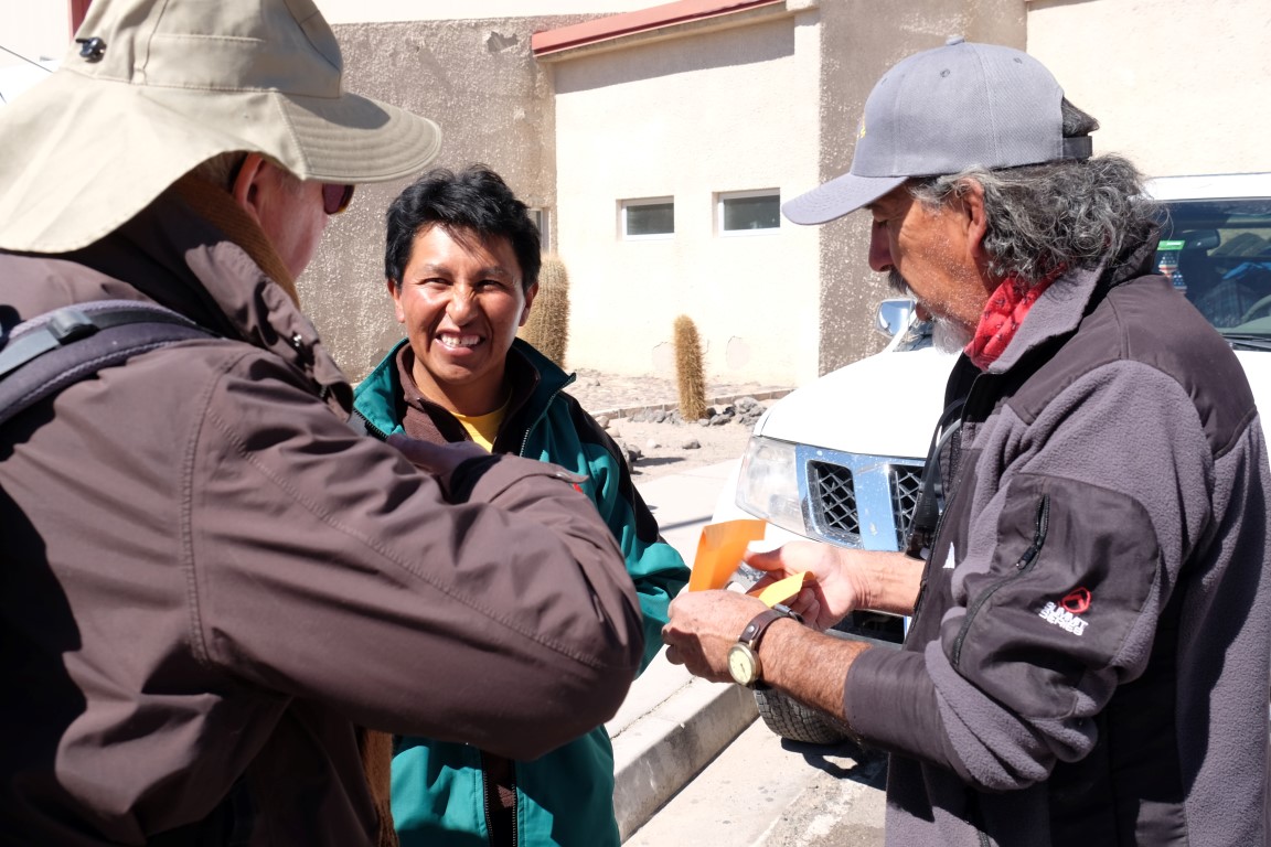 Eduardo, our Chilean driver met with Antonio, our to-be Bolivian driver and exchanged about the program and the cash money the agency had given him to handle to Antonio for all the expenses covering the trip, hostels, food, petrol.