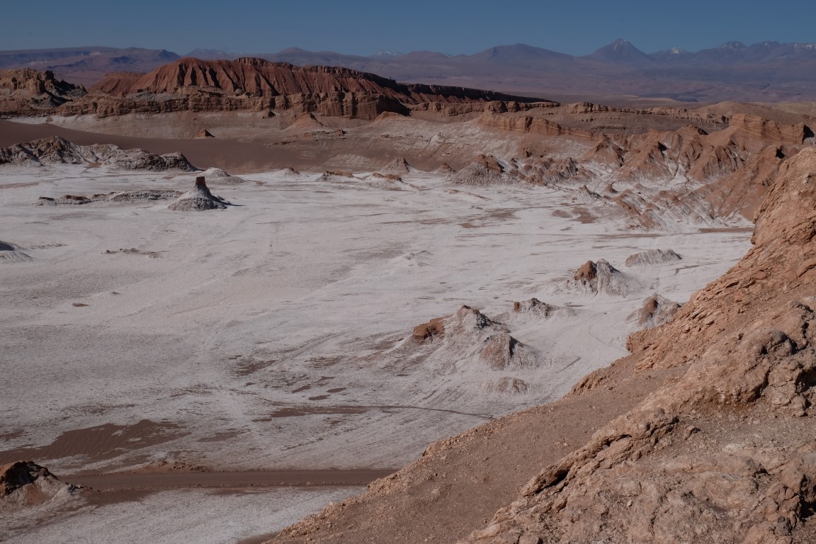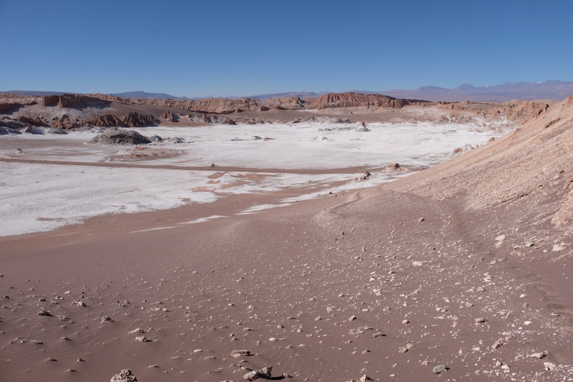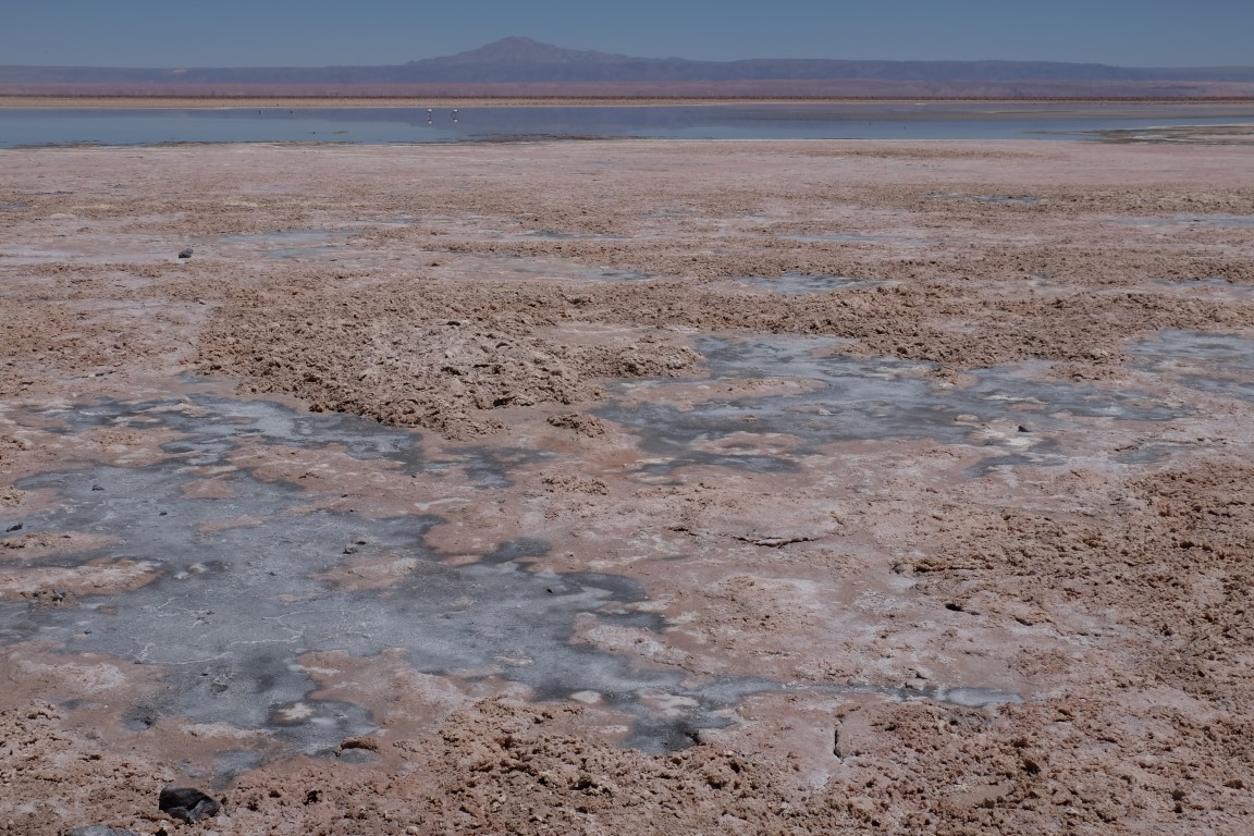 We shoot off again and went to the Salar de Atacama. However, it is not plain white salt like the Salar de Uyuni, but rather dust and muddy rocky ground like here.