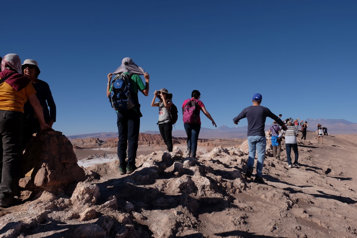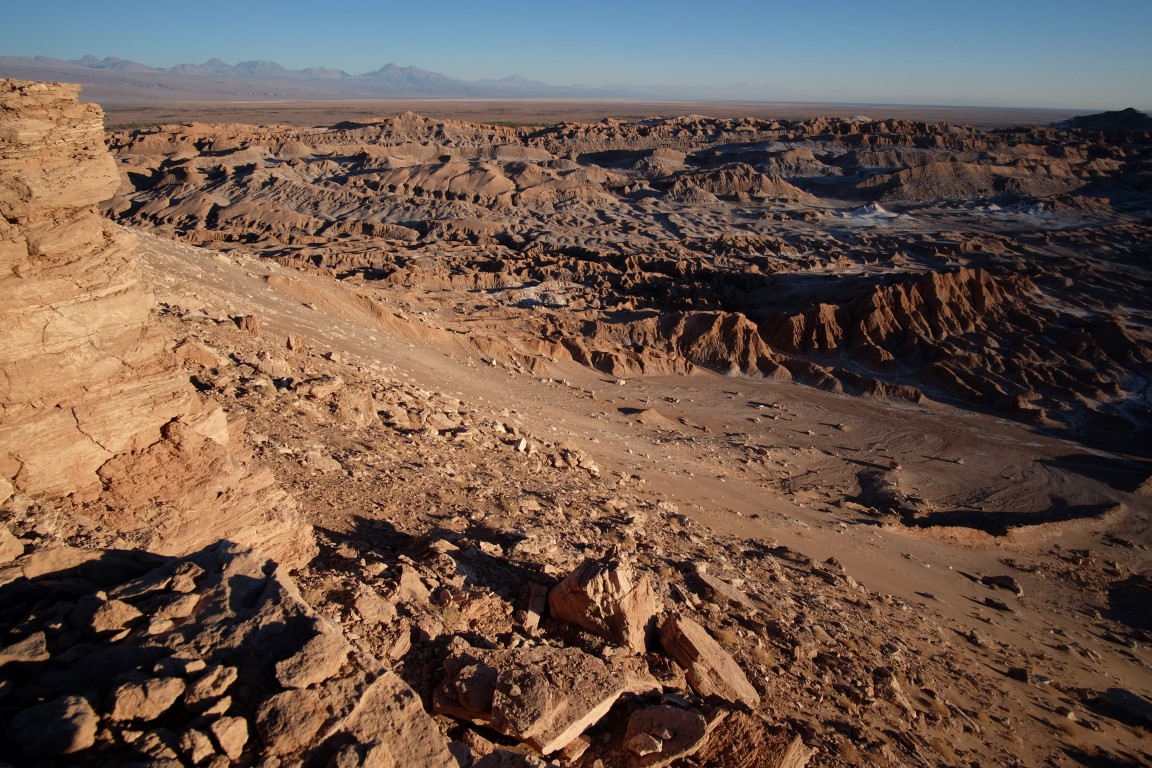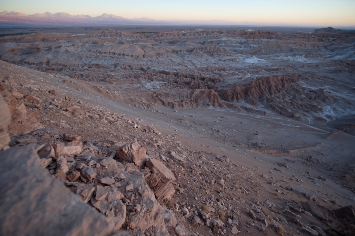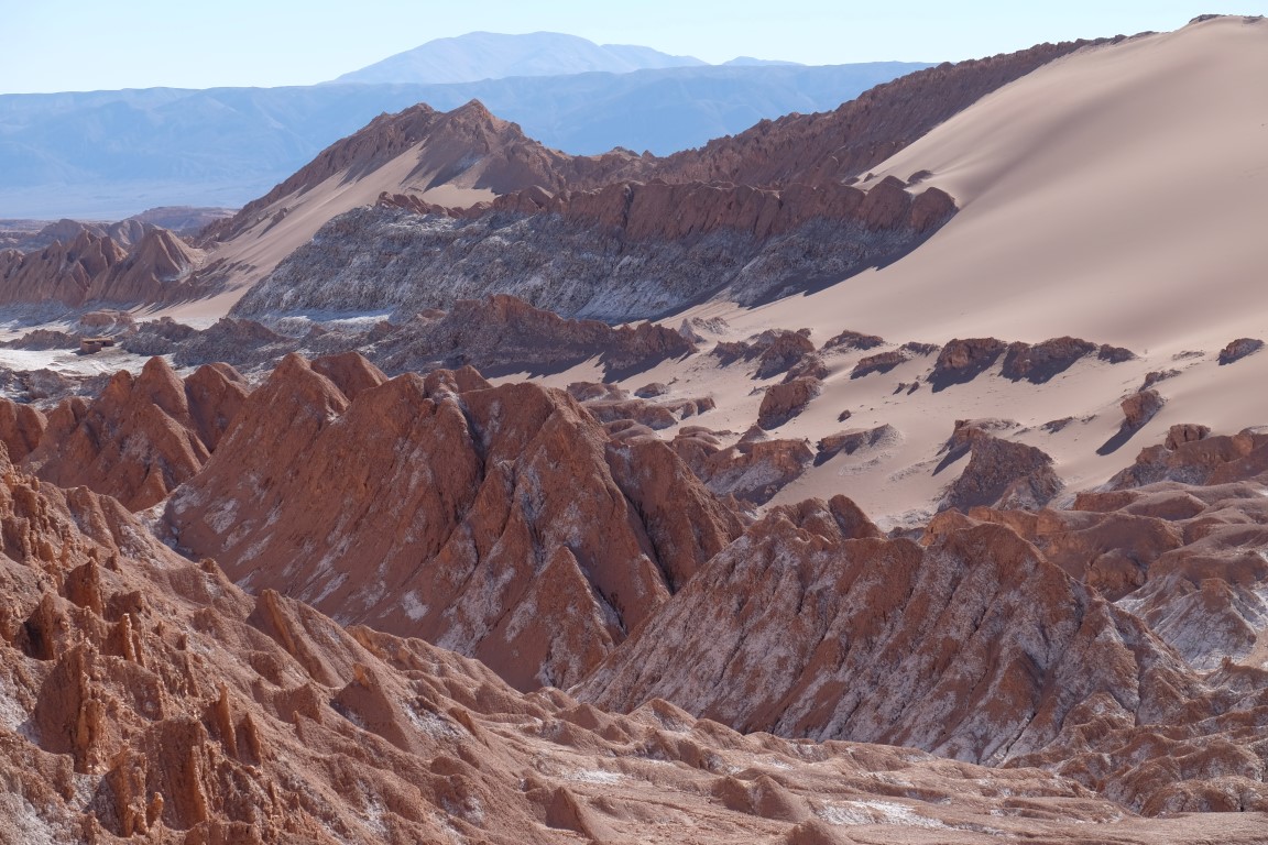 We shoot off again and went to the Salar de Atacama. However, it is not plain white salt like the Salar de Uyuni, but rather dust and muddy rocky ground like here.