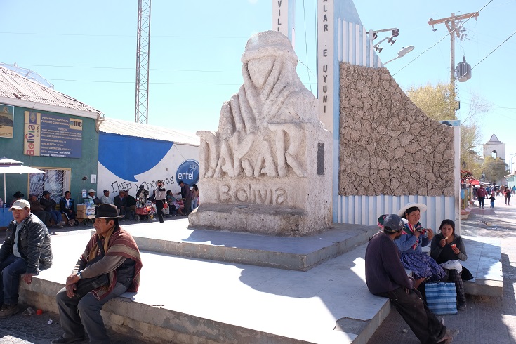 We got dropped and everyone went in different directions. Adrien and Kim were off to catch a bus or something to go to Sucre immediately while Salma got harpooned by a woman who wanted to sell her a tour to the Salar. As that`s what she wanted to do the next day, she went with her. I walked the street in the direction of the Piedra Blanca hostel and saw this landmark statue of the Paris Dakar.