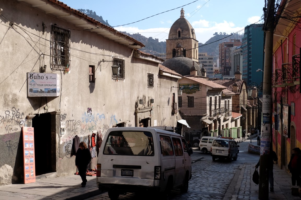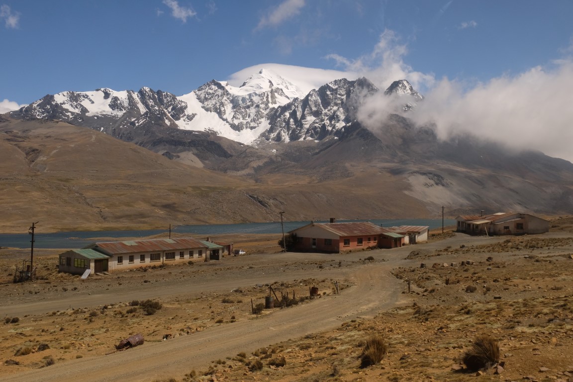 8.30am – 9am we were in the car, drove to El Alto where our to-be guide Theo bought some food for lunch, chicken, salad, rice, potatoes, all ready-to-be-eaten soon meal, nice. Then off we went in the direction of Huayna Potosi. We stopped to take a picture of it. Yep, that mountain, right here, which summits at 6,088 meters. There are about a dozen mountains which are above 6,000 meters high in South America and Huayna Potosi is supposed to be the most accessible for beginners who do not have any experience in mountaineering.