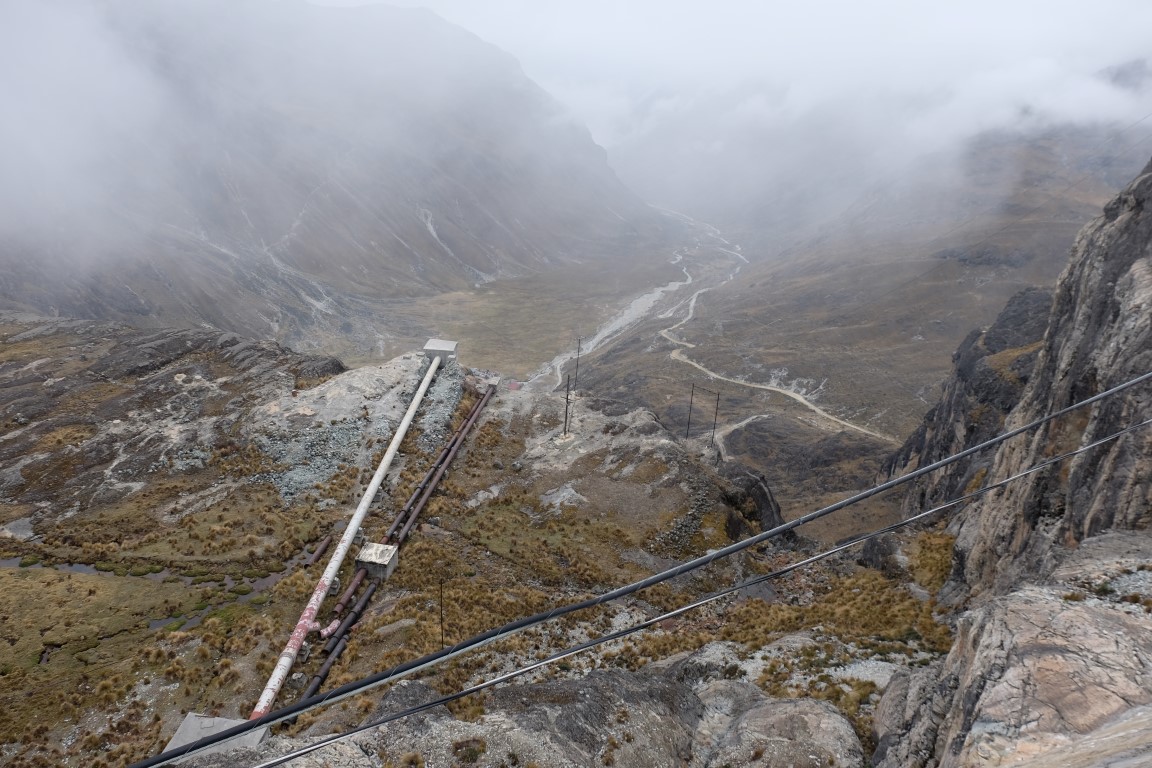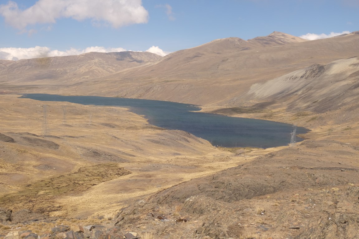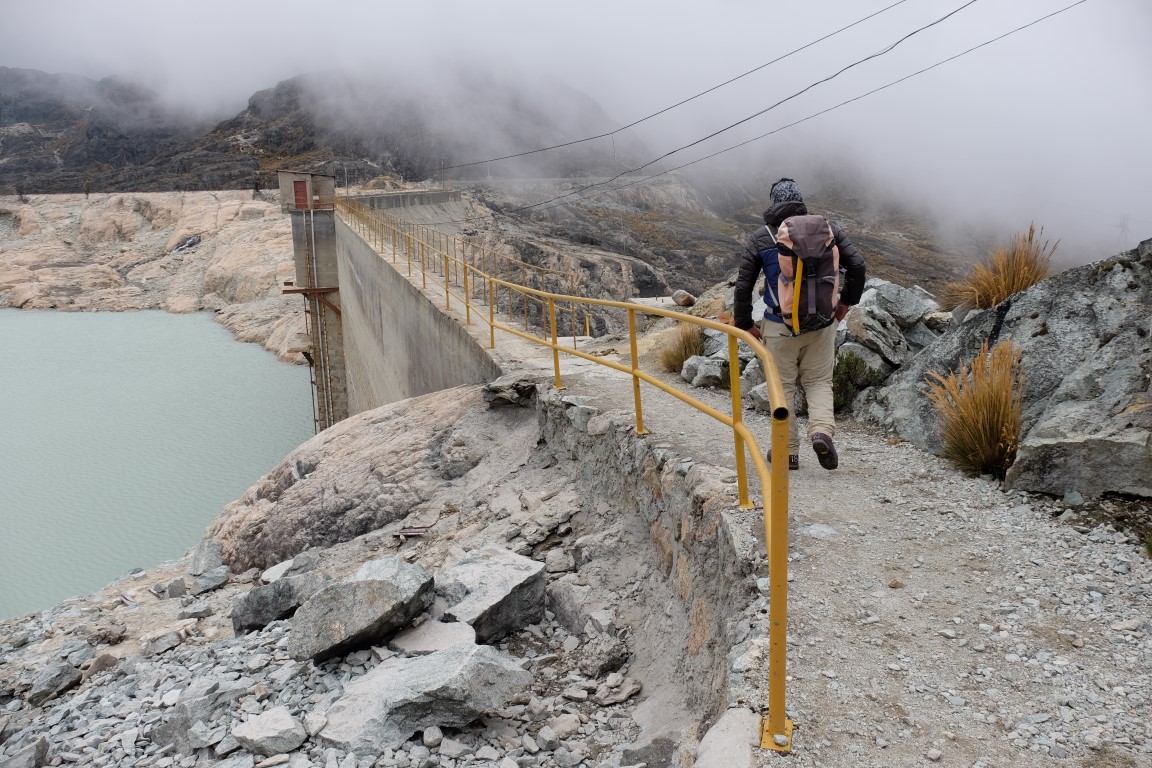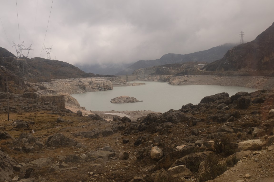 We arrived at the Huayna Potosi lower basecamp at 4,700 meters high. As Lluis and me had both been staying above 2,400 meters and mostly around 3,500 meters the past three weeks, that altitude didn`t bother us too much. To the left, another lake with grey water and a dam.