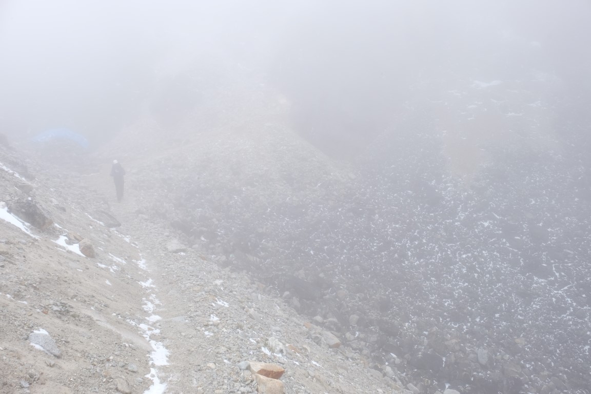 We got our bags ready, last stop at the toilets outside. The fog was invading the night. And then we went to sleep. But I couldn`t sleep during all this “night”. I kept turning and turning in my bed, very sadly for the German guy who was sleeping in the bed under mine who probably suffered from me moving and shaking this wooden bunk bed, sorry buddy…I also experienced something really new, the sleep apnea you get at this altitude. You breathe in but…your body forgets to breathe out. And you feel stuck suddenly. And you have to breathe out very very heavily. That kept preventing me from sleeping. Breathing when lying was sooo hard. I wasn´t too cold otherwise. Had a mild headache so took an Aspro. No, just that breathing thing. And everyone seemed also to keep taking turns going to toilets. I actually had to get out of the bed around 8.30pm and go again to toilets too. So not much sleep that night sadly.