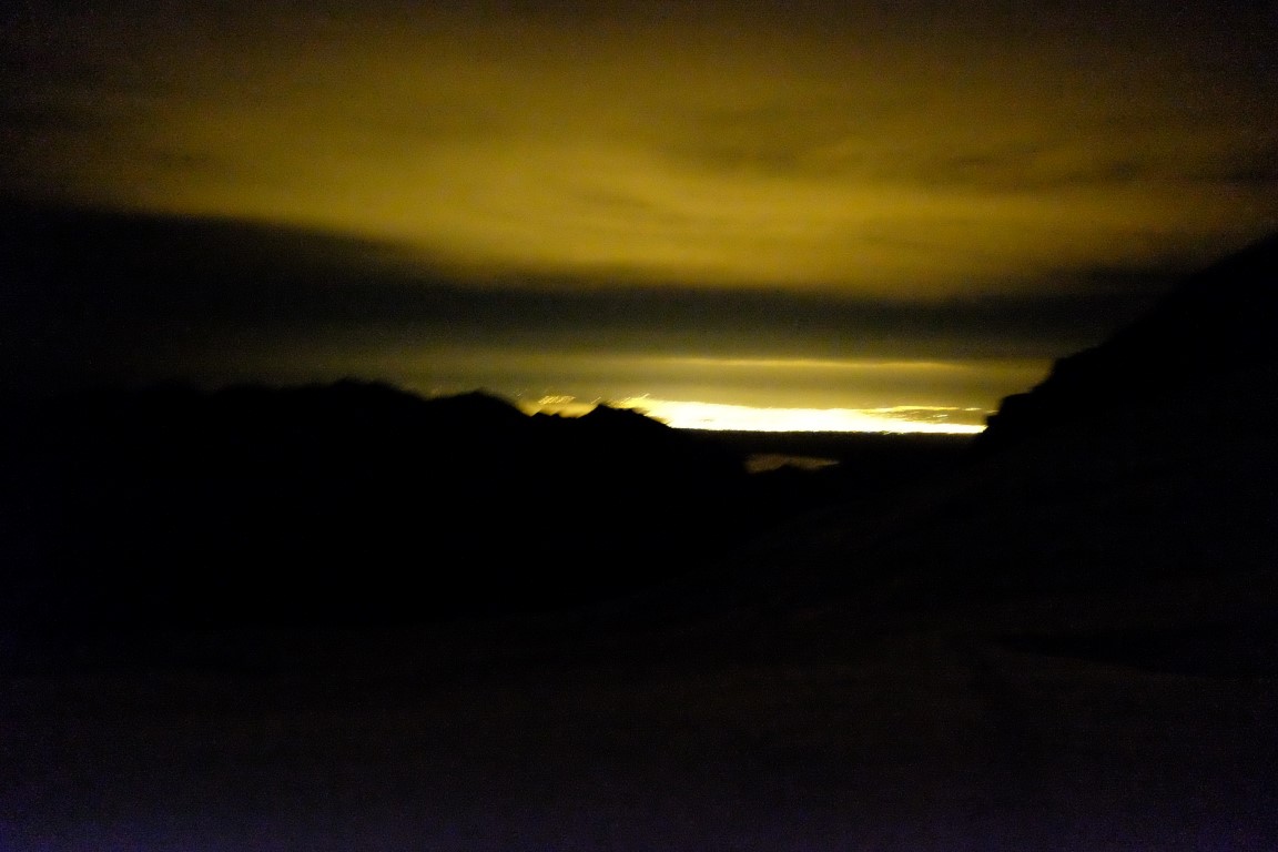 1.19am Our first break of 2-3 minutes. The idea is to walk slowly and constantly without stopping for about 45 minutes and then take a break of 2-3 minutes only because otherwise you get cold. We looked back and could see down the track the lights of the others.