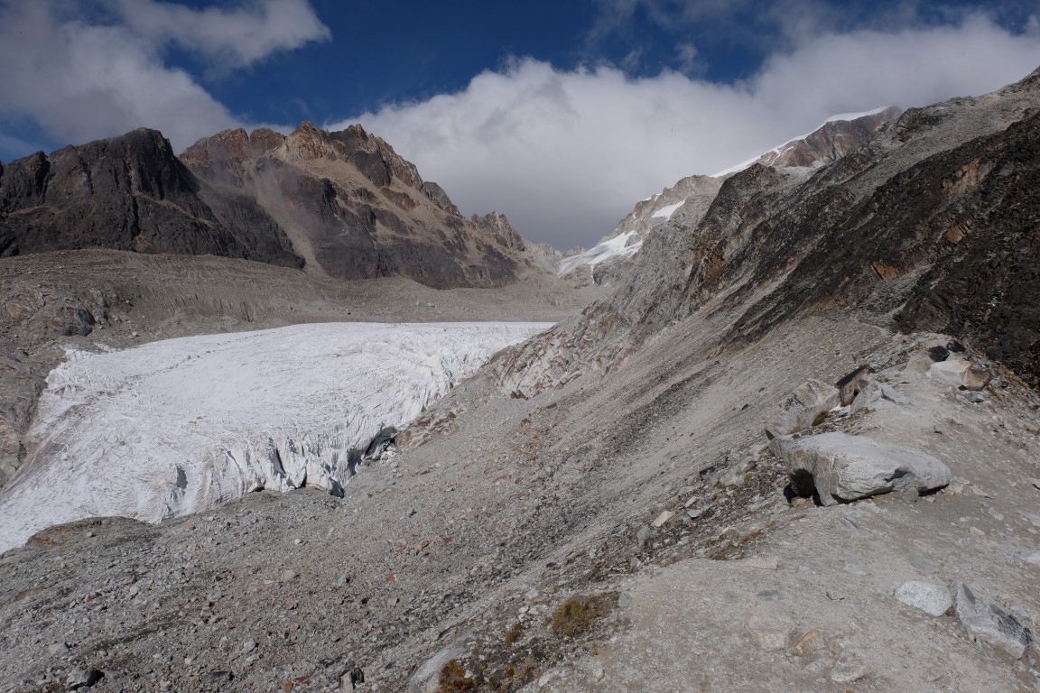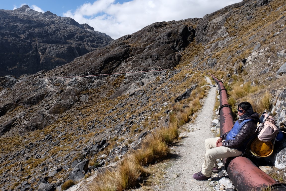 Just 10 minutes left to reach the lower basecamp but we were tired and needed a break. When I saw Annabel stopping and sitting there, I did the same, I sat on a rock overlooking the lake.