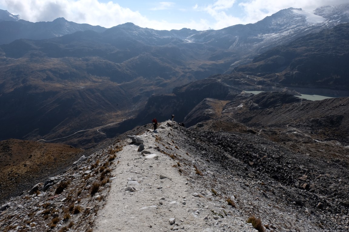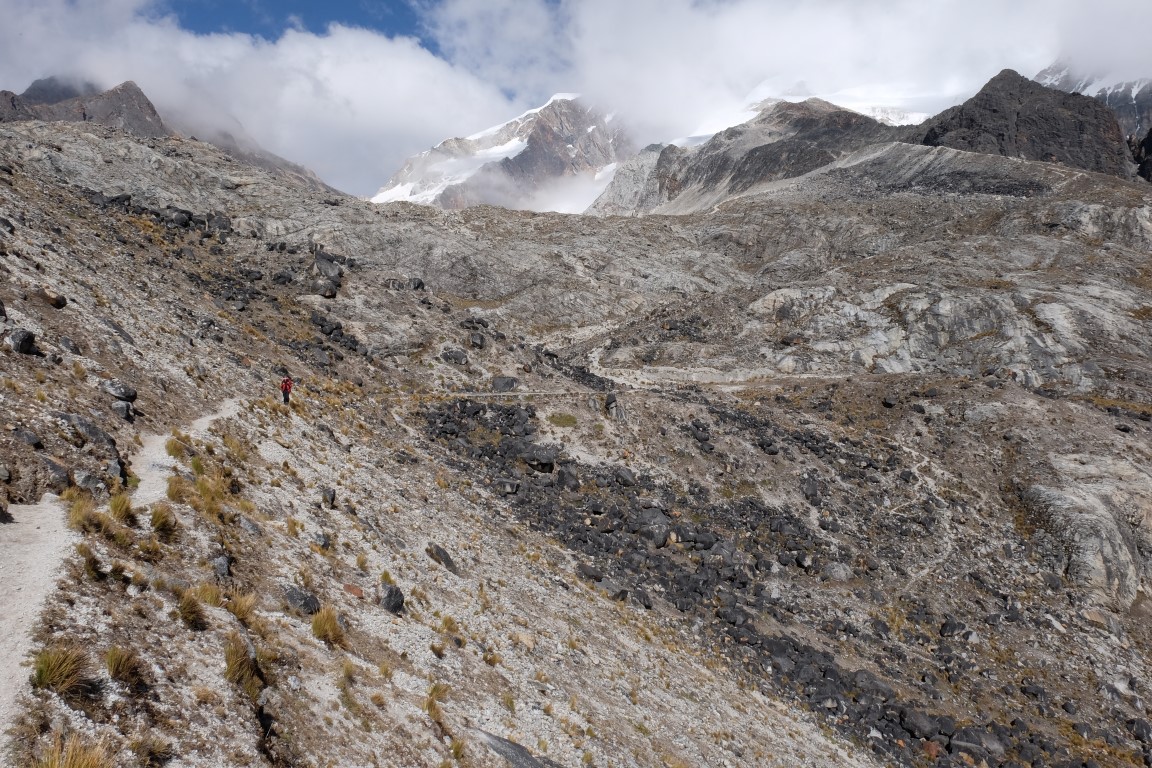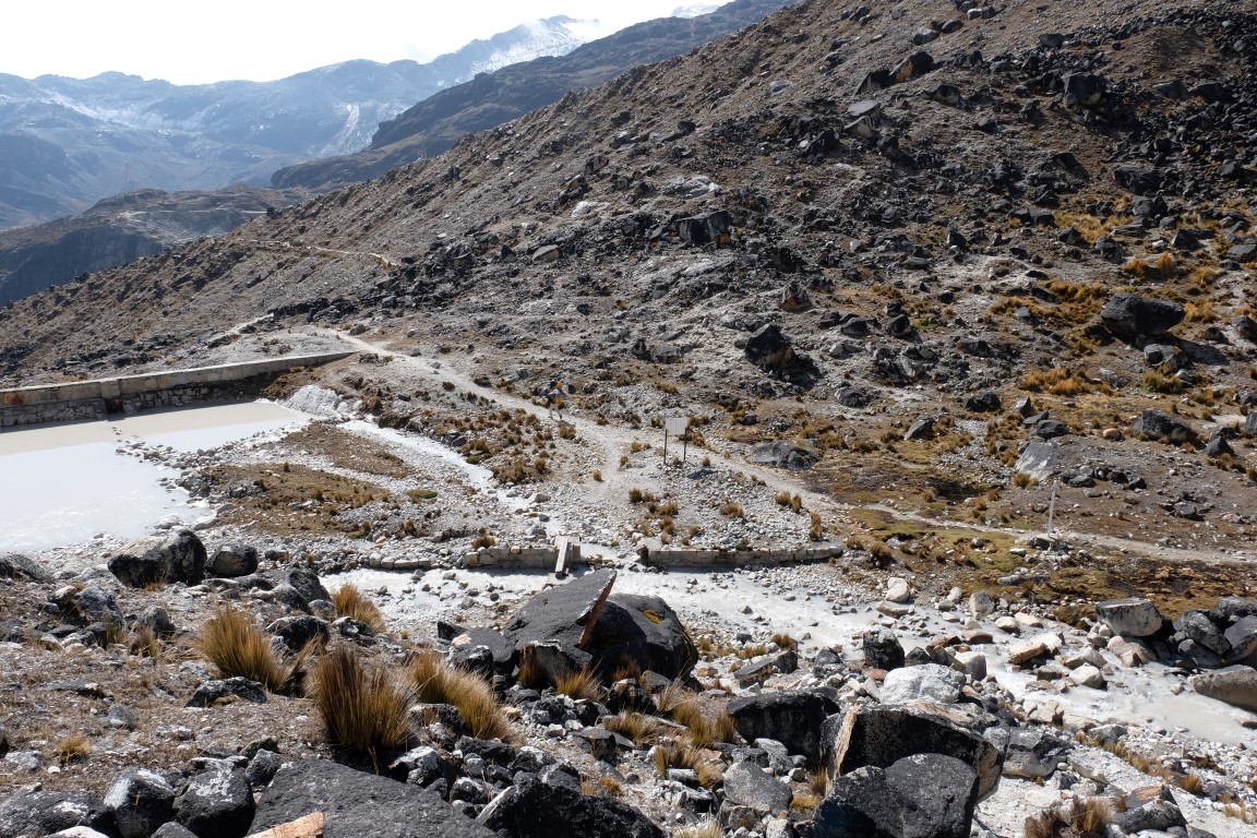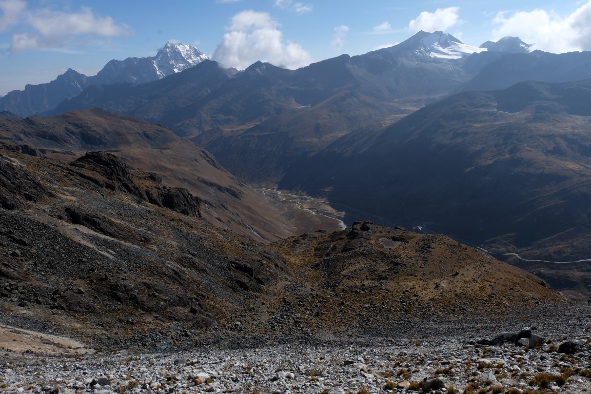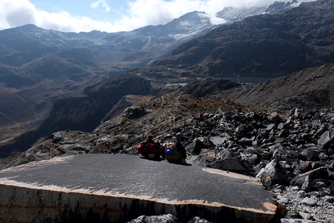 After some mate de coca tea, and some bread and jam and biscuits, we started going down to 4,700 meters lower basecamp with Theo and Annabel. It was 7.16am. At least, it was a beautiful day that day and the view was clear.