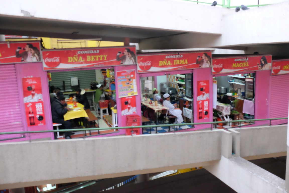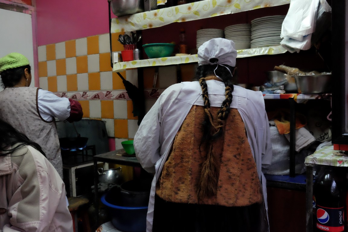 After that, we went back to La Paz and while Annabel and Lluis spent the journey chatting, I spent it sleeping!! We went back to the hostel and Lluis took the single room as he was the one who needed the most to rest and Annabel and me took the twin rom. However, we realised that the wooden floor had just been polished and the smell of the product used was terrible. There was no way we would sleep in that room. So we moved to Cactus Hostel nearby. It was about 1pm. We did nothing until 6pm, we just chilled, like zombies. At 6pm we met with Lluis and went to the central market near San Francisco church where they serve food. The concept is awesome, two or three women are together cooking in their little box and on the other side there is a table which can sit 10 to 15 people. It is so cool. So we stopped in one of them where we had dinner.