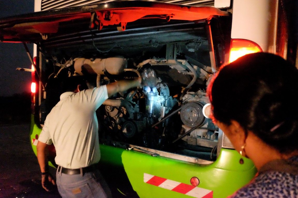 About 90 minutes later, the bus stopped. There was a mechanical issue and we got stranded for a bit more than an hour. As they had turned off the motor, it was getting really hot in the bus so they had opened the door. We were getting devored by mosquitoes. I was so glad I had taken the insect repellent with me in the small backpack. I happily shared it around, saving my 8 bus mates of the first floor from being bitten. 7 of them actually, as one old woman claimed that she was never being bitten. I wish mosquitoes didn`t like me either!! A few of us went out to stretch our legs and check out what was going on.