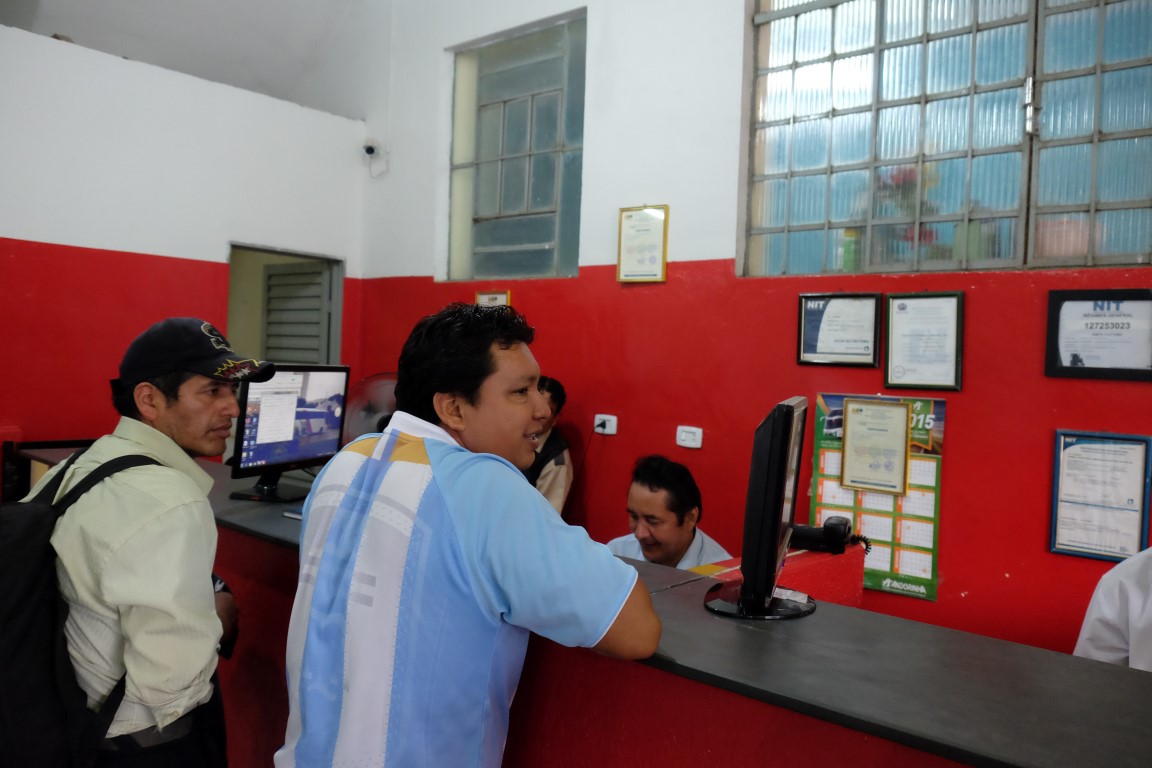 Here was Sergio, the “taxi buddy of Mauricio the guy who had sold me the rip-you-off package” with the blue and white shirt, asking about the bus ticket for me at the counter. It was 7am and they wanted to put me on the 11am bus from Corumba (on the other side of the border). I asked: Why not the 9am bus? They explained to me that there was an hour more on the Brazilian side, so right now was already 8am and by the time I would finish the border formalities and gone to the bus station, the 9am bus would probably be gone. Fair enough. For info, the bus ticket from Corumba to Campo Grande is 100 reales, so about 220 bolivianos. Only one bus company does this bus journey and is called Andorinha.
