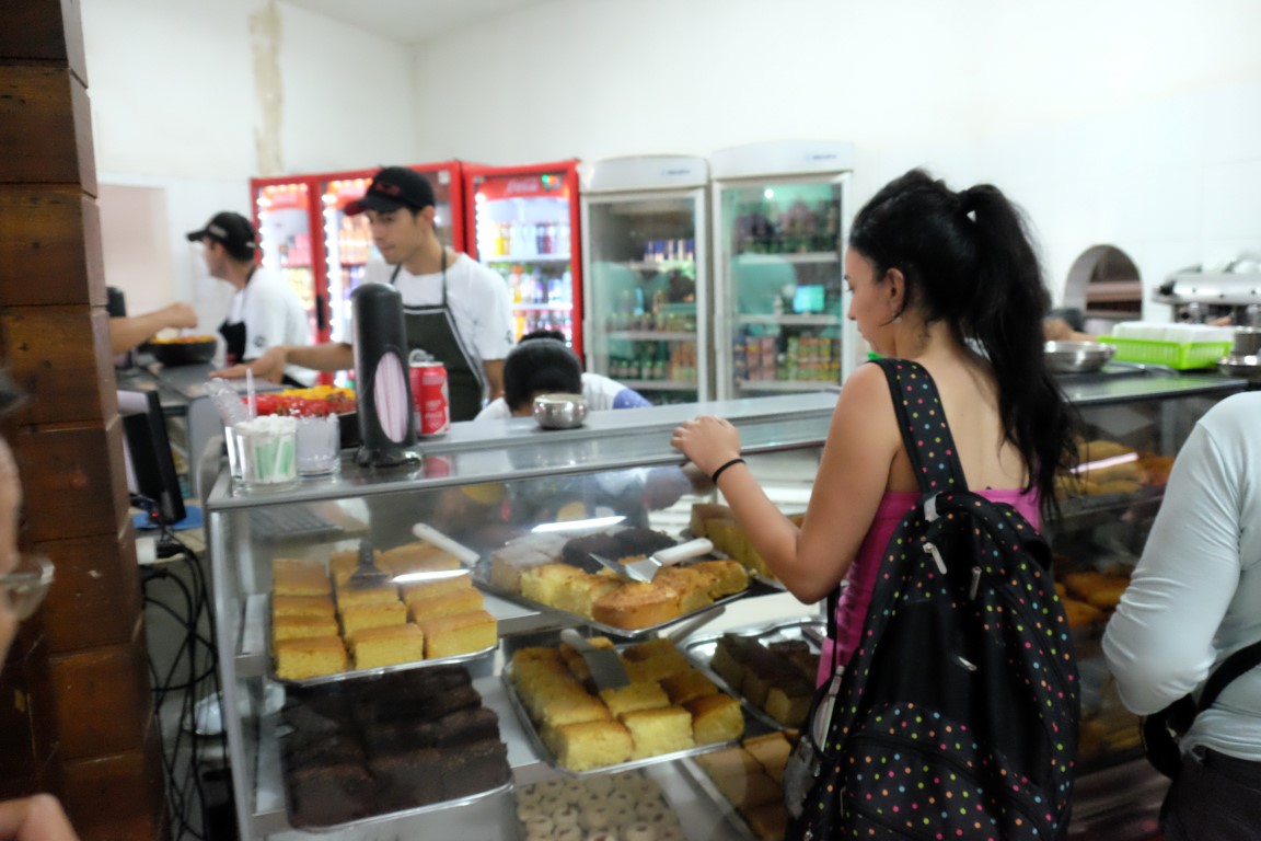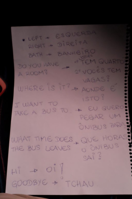 The restaurant was clean and modern. You could feel you were in a much more developed country. It was funny to chat with Mariana and Vanessa actually. They had just been travelling in Bolivia for 2 weeks and were happy to be back in Brazil, where you don`t pay for toilets and the toilets are modern and clean, where everything looks modern and clean, where you can eat lots of different cakes and where the food is generally much more modern and varied. They were excited to be back. We got back into the bus and they gave me a “Survival” lesson of Portuguese and Mariana wrote down for me a couple of sentences. Phew…