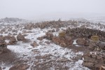 I woke up naturally around 7am and got dressed, added the rain pant over the hiking pant and put on 4 layers. It was cold. I got out of the tent and Philip and his girlfriend were cooking breaky and had started packing their stuff. There was no sound coming out from the tent of Francesca and Alex so I assumed they were probably still sleeping. I went to chat with Philip and his girlfriend. I asked Philip where he had bought his white gas for the stove and he told me that he had found it at a camping store in El Chalten. As I had thought it would be hard to find, I had bought 2 bottles at the Easy shop in Valparaiso and since then I had not actually checked out if it was easy to find any, so it was great to hear that it was possible. Philip and his girlfriend were travelling for 3 weeks and then back to Switzerland. He had been to Torres del Paine, but 9 years before. We chatted a bit and then I left and went to prepare stuff for brekky. A bit later, Philip brought me his stove and I started boiling water for 3 coffees and to cook rice that we could eat for lunch. Francesca got out of the tent and we started chatting. An hawk was nearby and I walked around trying to get a sharp picture of it for a bit. Here it is, so pretty.