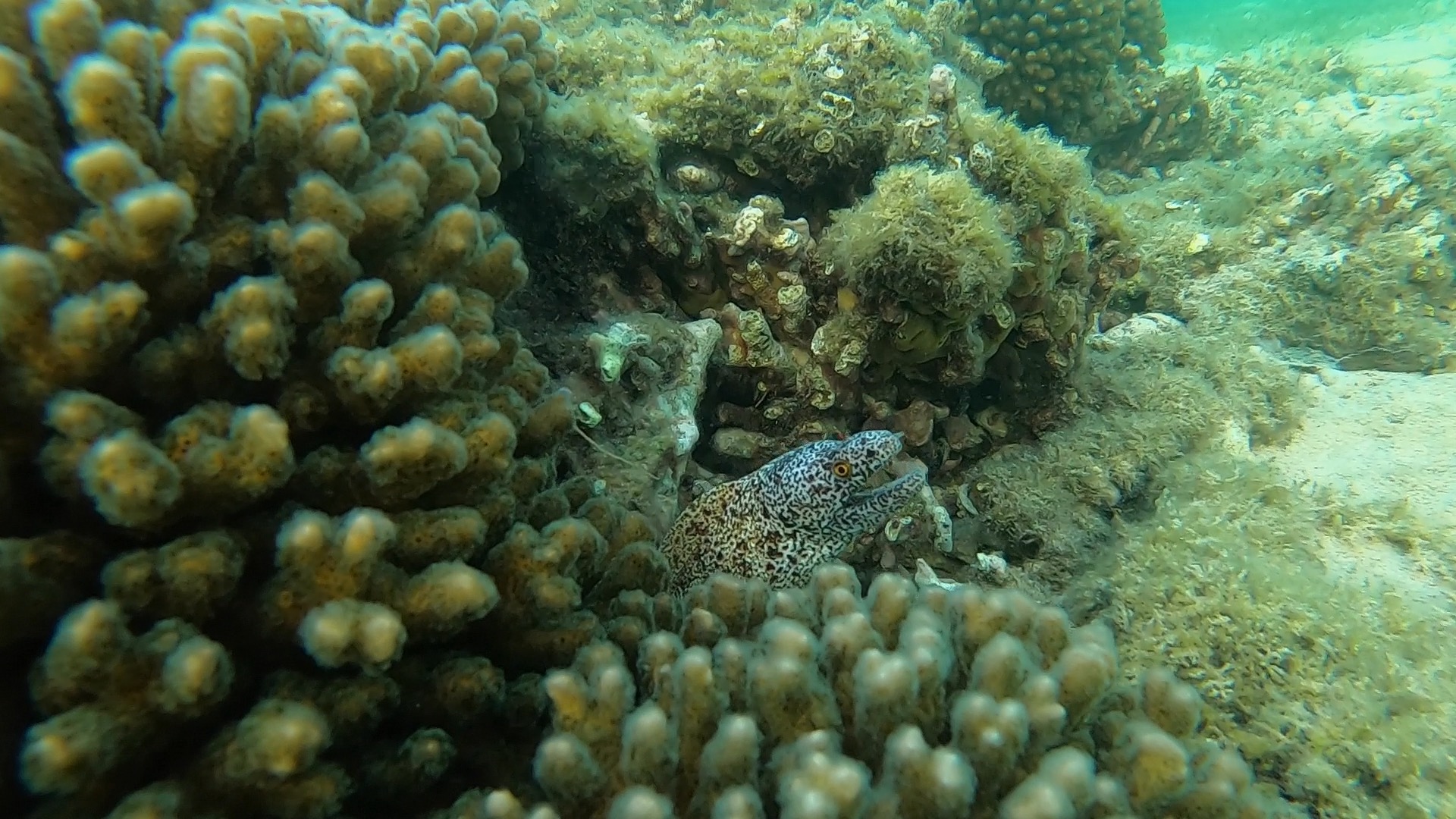 Then we went back, grabbed our freediving gear and headed to Old Settlement where we freedived in the shallow with a green turtle and a blotched fantail ray as well as the hit and run benny taking shelter in the heart urchin shells, a moray eel and some more catfish.
