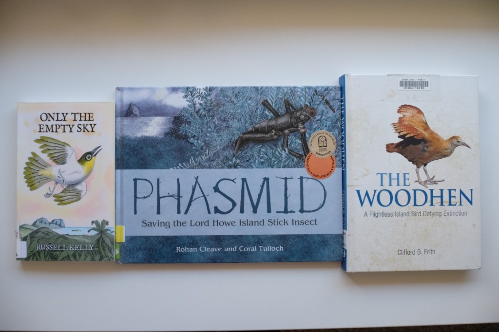 Here are three books I had picked up at the library before to go to Lord Howe Island that are worth a read for anyone interested in Lord Howe Island. The first one is a novel of an American bird drawer who comes to Lord Howe Island to draw birds and falls in love with a local woman and stays. The second is a children’s book about the phasmid and the last one is about the woodhen but is also about all the other bird species of Lord Howe Island which got extinct as well as about the island itself, it is an incredibly exhaustive book filled with incredible history and love from its writer, you can tell Clifford B. Frith spent hours writing it and is very passionnate about the island.